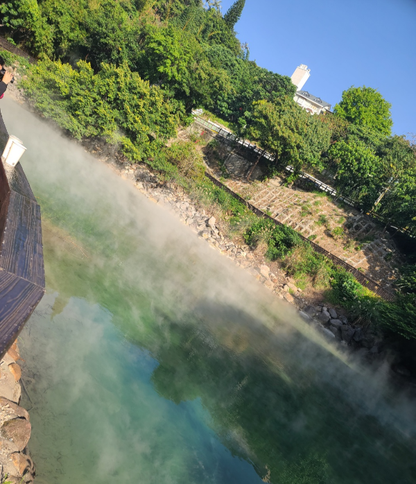 - 여기서 피어나는 온천물은 신선하고 깨끗하여 피로를 풀고 몸과 마음을 편안하게 해 줍니다.