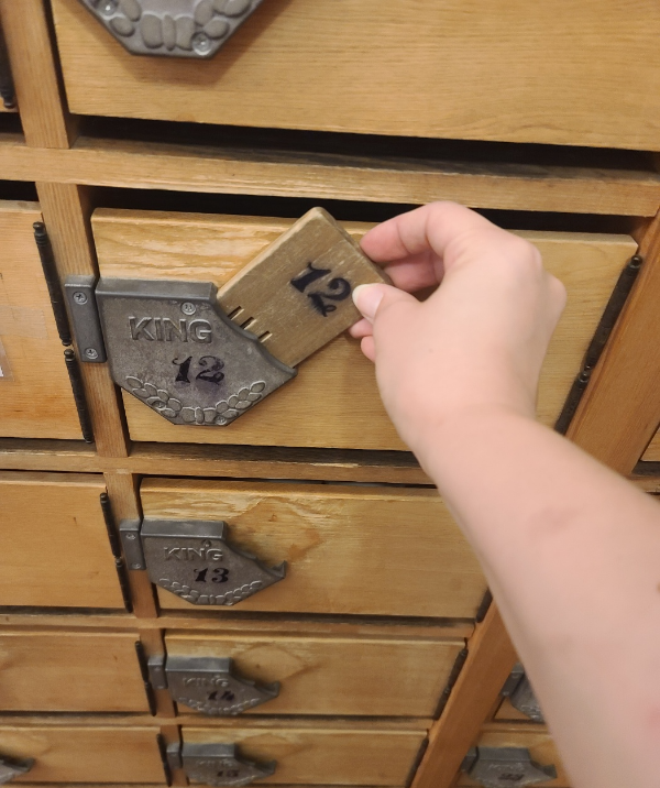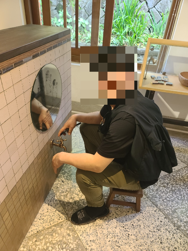 - 입구에서 안내자의 지시에 따라 신발을 벗고 줄을 서면 순서대로 예스러운 나무키가 꽂혀 있는 곳에 신발장에 신발을 넣고 빨간색 슬리퍼로 갈아 신어야 합니다.